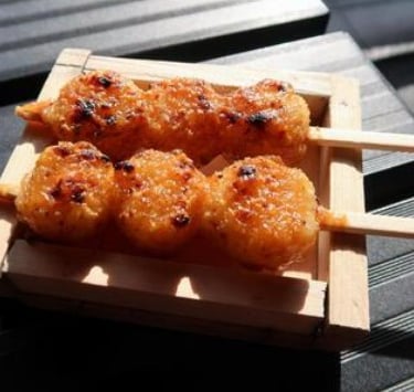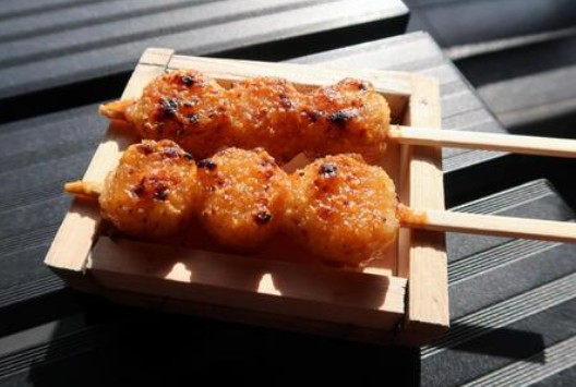 Thick rice cakes grilled on skewers and smothered in a walnut-miso glaze. Slightly sweet, savory, and full of regional flavor.