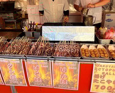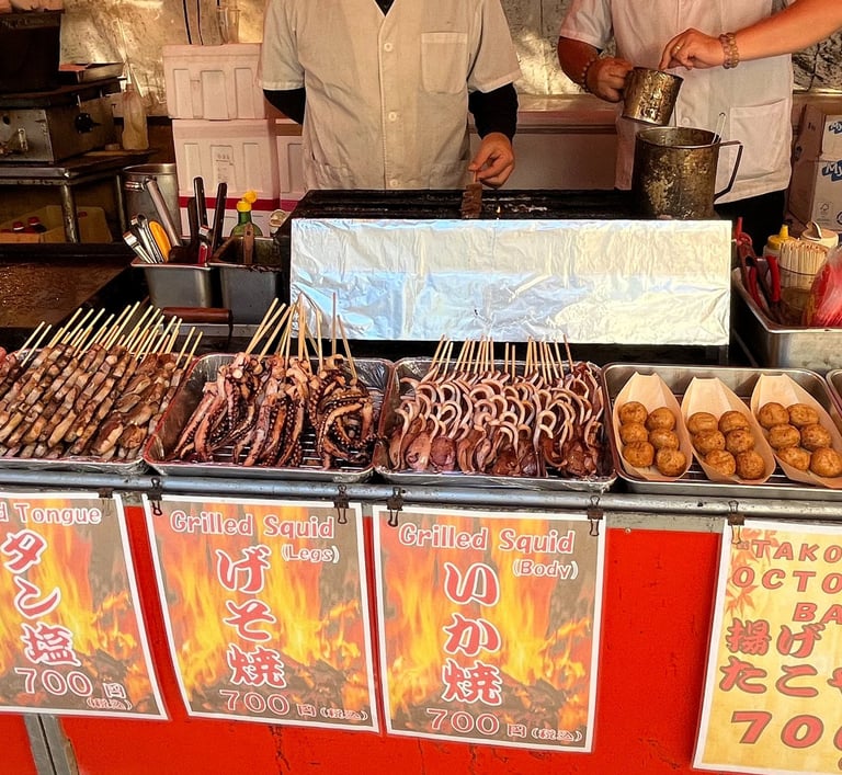 Wander through Omotesando Shopping Street or Machiya Street, and you’ll be tempted by the smells of sizzling skewers and baked goods. Some must-try snacks include: