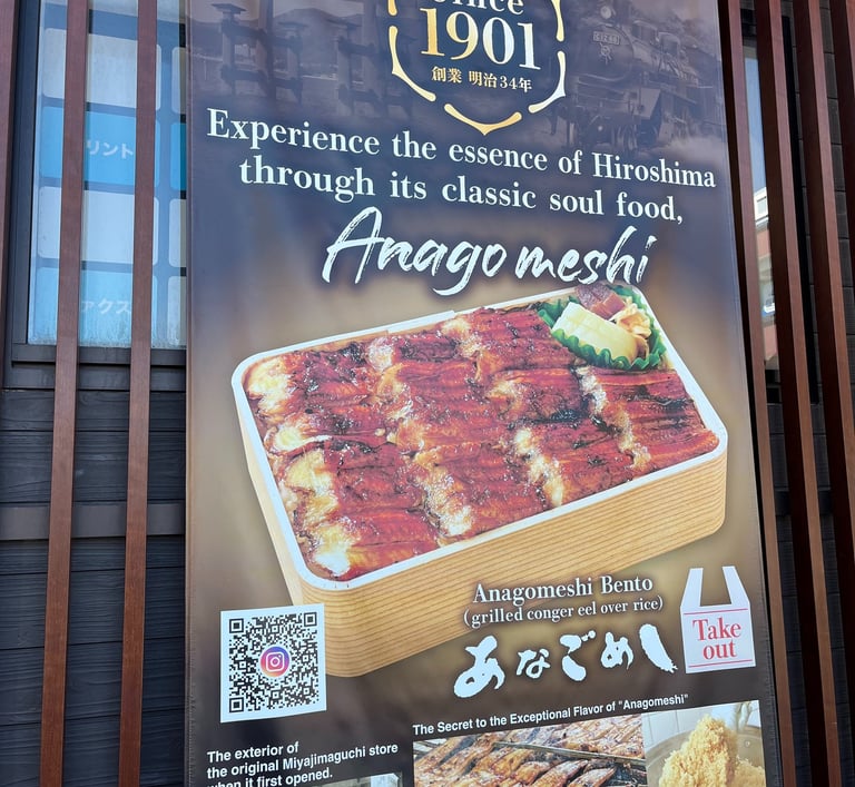 Ueno (near Miyajimaguchi Station, before taking the ferry) – a historic restaurant famous for anago-meshi